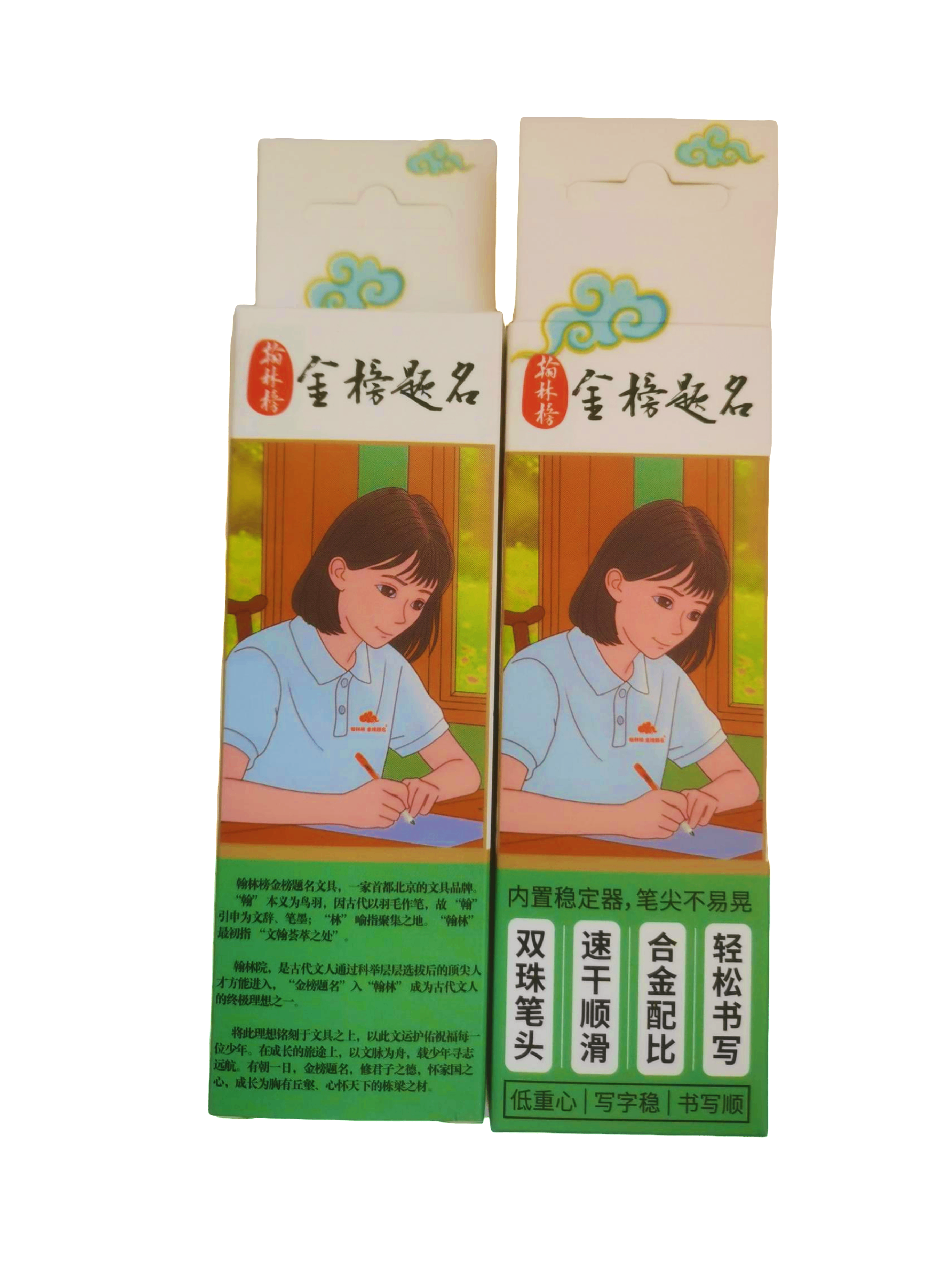 品牌使命: 将古代文人终极理想之一“翰林榜 金榜题名”铭刻文具之上,用文运与祝福陪伴少年儿童健康成长。